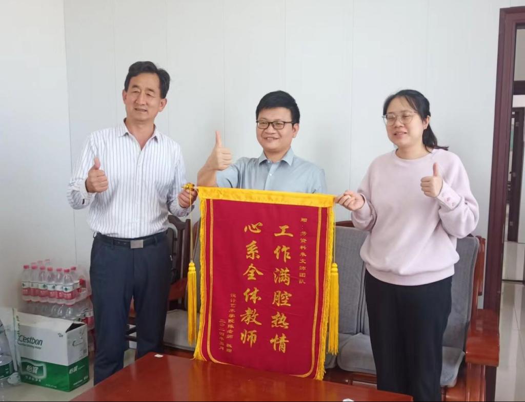 2024年6月7日上午,设计艺术学院退休教职工陈保安给人事处劳资科科长朱文沛送来印有“工作满腔热情,心系全体教师”的锦旗,感谢她解决自己的退休手续办理的相关问题以及热情周到的服务。