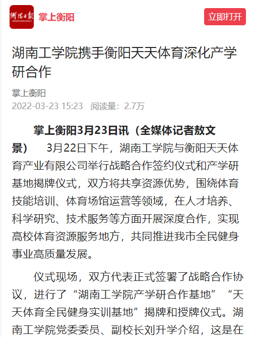 蒋纯金:紧扣Beat365应用型人才培养定位,开展体育产学研及赛事服务项目,体育教学科研部立足衡阳市实际,在体育社会服务和助力体育产业发展中做出了创新,一是承接衡阳市体育社团的指导和赛制组织承办等,例如与衡阳市乒乓球协会、跆拳道协会、体育舞蹈协会等社会组织签订服务协议,为他们进行技术指导和赛事服务。二是与衡阳市一些体育产业公司和企业开展产学研横向项目,既为衡阳市体育产业发展提供帮助,也为学生尽早适应社会和谋划就业方向铺设了道路。