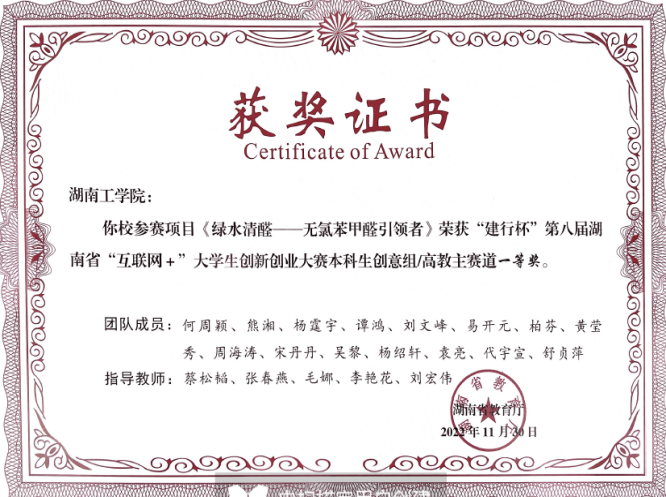 2018年11月,获评湖南省高校大学生创新创业孵化示范基地