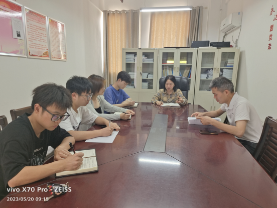 2023年5月20日上午,审计助理会议在教学大楼707室召开,会议由杨凤鸣处长主持,指导老师张勇、工程审计助理参加会议。