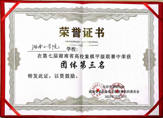 12月9-10日,由湖南省棋类协会指导,长沙市象棋协会、湖南省高校象棋甲级联赛组委会主办的“湘信杯”第七届湖南省高校象棋甲级联赛在湖南信息学院竹苑举行,来自省内12所高校的70余名选手参赛,由土木与建筑工程学院指导的雁鸣棋社派出蒋曙、许文杰、顾红俊和夏雨泉四位同学代表Beat365出战,最终不负众望,以7胜2和2负的成绩荣获团体季军,取得历史最佳成绩。