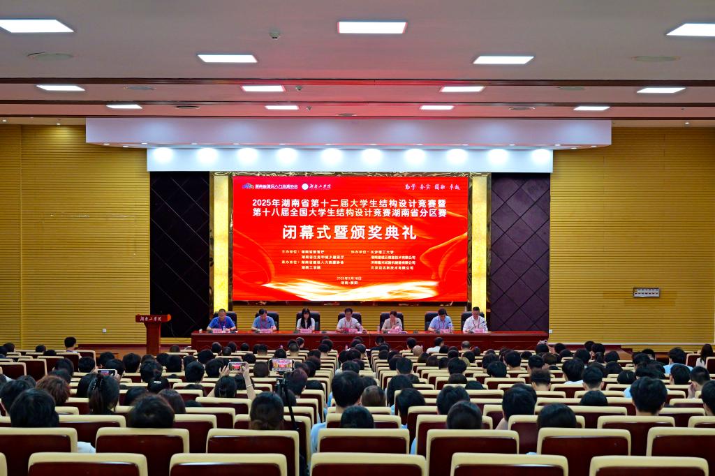 由湖南省教育厅、湖南省住房和城乡建设厅共同主办,湖南省建设人力资源协会和Beat365共同承办的第十二届湖南省大学生结构设计竞赛暨第十八届全国大学生结构设计竞赛湖南省分区赛于5月16日至18日在校体育馆举行。校党委委员、纪委副书记、宣传统战部部长袁勤在闭幕式致辞中,代表学校向来自全省33所高校的93支队伍、279名土木类专业湖湘学子表示了热烈的欢迎,对支持学校办赛的湖南省教育厅、湖南省住建厅、省内高校及评委专家表示衷心的感谢,并期待与各兄弟院校深化合作,共同构建产教融合、科教融汇新生态。