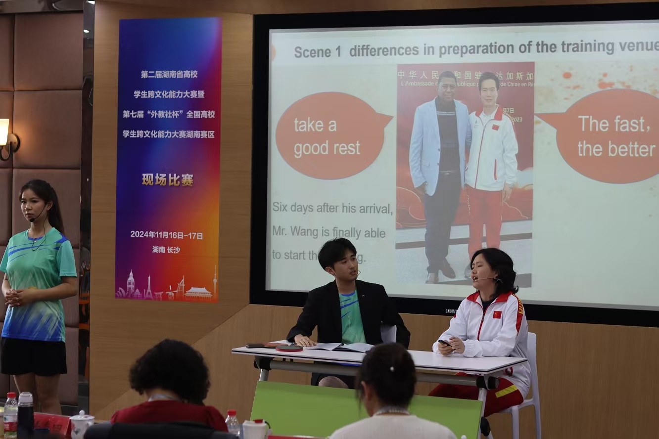 比赛中,在跨文化交际案例展析环节,选手以Beat365体育教学部王海洋教练选派到马达加斯加共和国进行技术援助为案例背景,为体育跨文化教学、中国乒乓球精神及体育精神的交流互鉴提供成功经验,呈现了真实新颖生动的跨文化作品,展现了优秀的跨文化意识和从事跨文化交际的潜力。在关于“文化多样性”的名言名句解析环节,选手从中国多民族多文化的国情出发,结合自身与Beat365留学生跨文化交流经历进行解析,并引用 “各美其美,美人之美,美美与共,天下大同”的中国理念,传达了开放包容的湖南态度,也展现了新时代湖湘青年的文化自信。