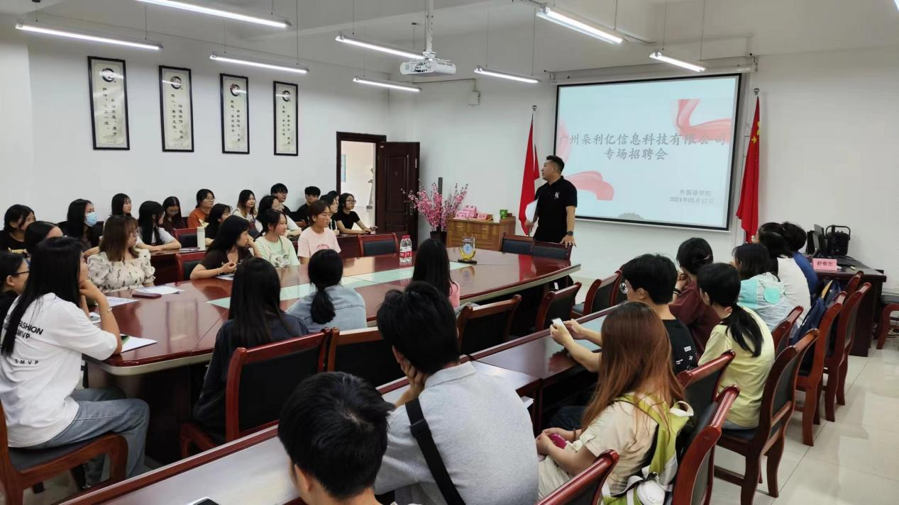 5月17日下午,广州朵利亿信息科技有限公司受外国语学院邀请,于外317教室面向我院2024届毕业生开展专场招聘会。