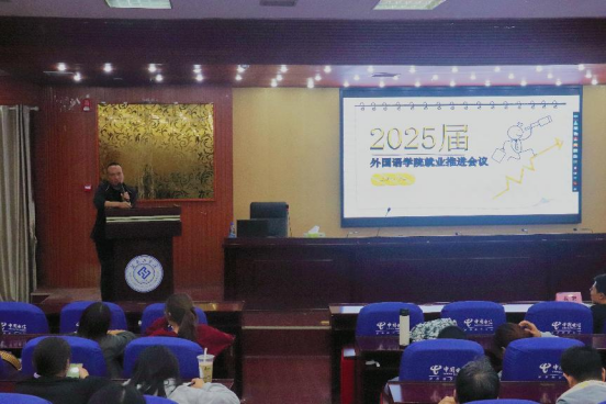 为进一步推进学院就业工作,11月7日晚,外国语学院在蔡伦报告厅召开2025届毕业生就业工作动员大会。外国语学院党委书记刘斌、学工办主任蒋蔚、全体辅导员和2025届全体毕业生参加大会。会议由就业专干彭方凯主持。