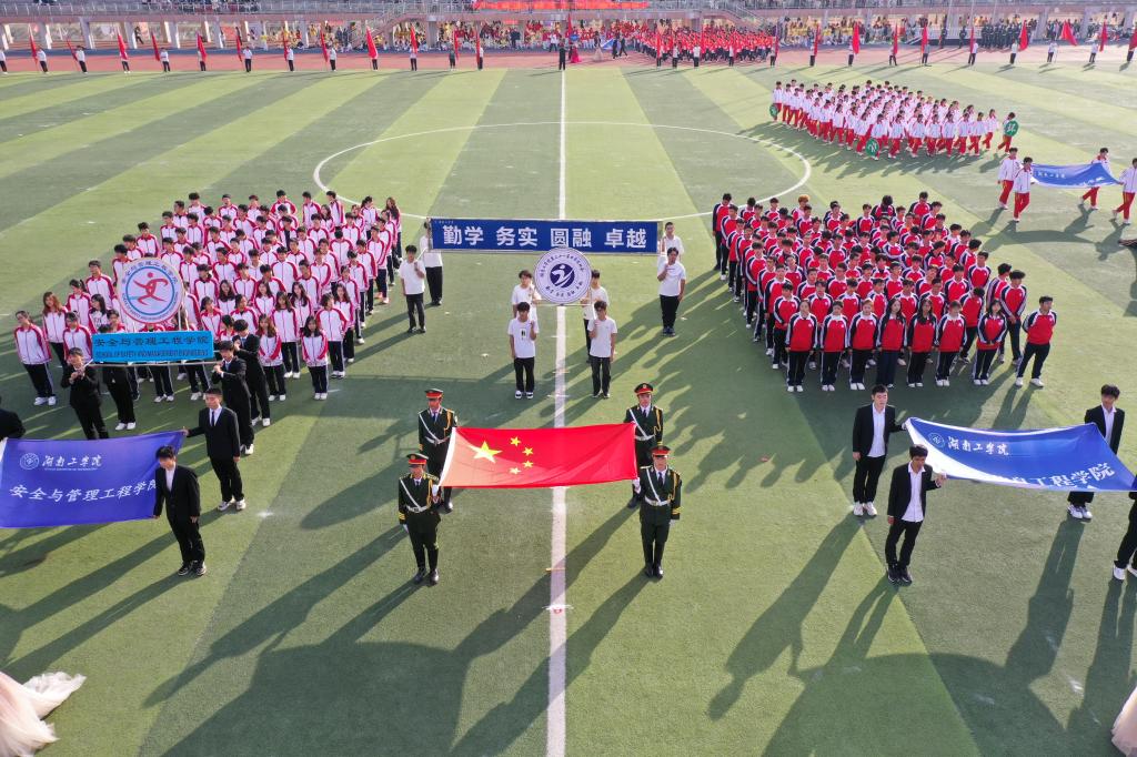 何建雄致闭幕词,他表示本次校运会是一次圆满成功的盛会。同学们的表现,生动彰显了湖工学子意气风发、团结奋进、锐意进取、追求卓越的精神风貌。他希望全校师生坚持体育锻炼,修炼阳光性格,激发生命张力;继续发扬体育精神,以满腔的热血,顽强的意志,坚定的信念投入到学习工作中去,为决战2026成功申硕和学校高质量发展贡献全部力量。