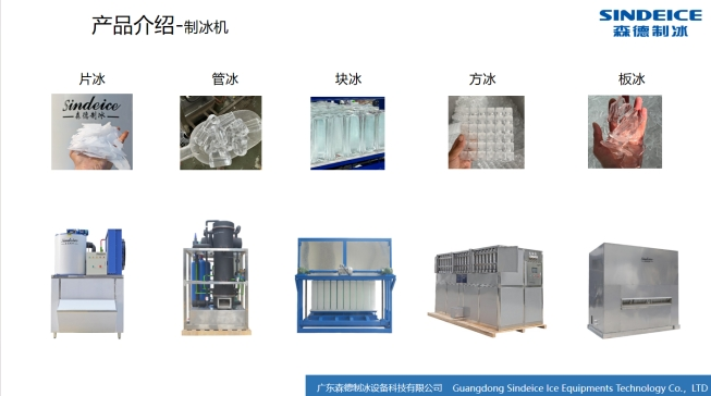 公司自主设计生产“Sindeice”品牌的片冰机、管冰机、直冷/盐水池块冰机、海水船用制冰机、方冰机、板冰机,透明冰机,造雪机,降膜冷水机,送冰系统及送冰辅助设备、集装箱制冰机组等设备。从日产冰量300kg到60吨不等,适用于超市冰鲜、酒店餐饮、食品加工、远洋捕捞、化工染料、药品医疗、混凝土搅拌、冰雕展示,室内外滑雪、冰雪乐园等行业。截止2025年,产品已经出口全球超过90多个国家,全国已经发展了260多家经销商,森德制冰出品的每一台制冰机,都受到用户广泛认可。