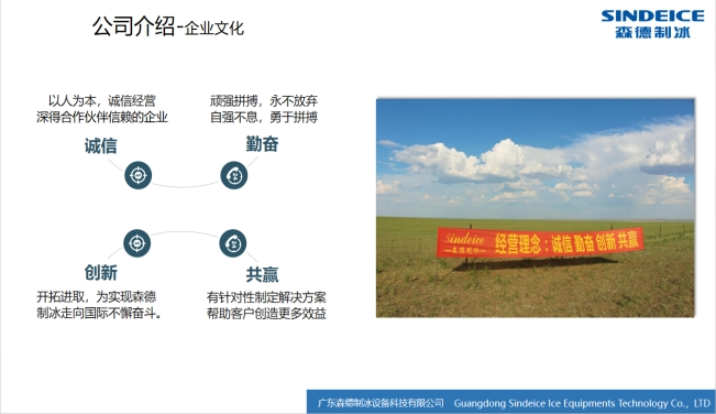 广东森德制冰设备科技有限公司,是一家专业从事制冰机研发设计、生产销售、工程安装和售后服务为一体的国家高新技术企业。公司以“以人为本,共同持股,人人参与”作为企业文化,打造了一支拥有工匠精神的技术团队和服务全球的销售及售后团队。