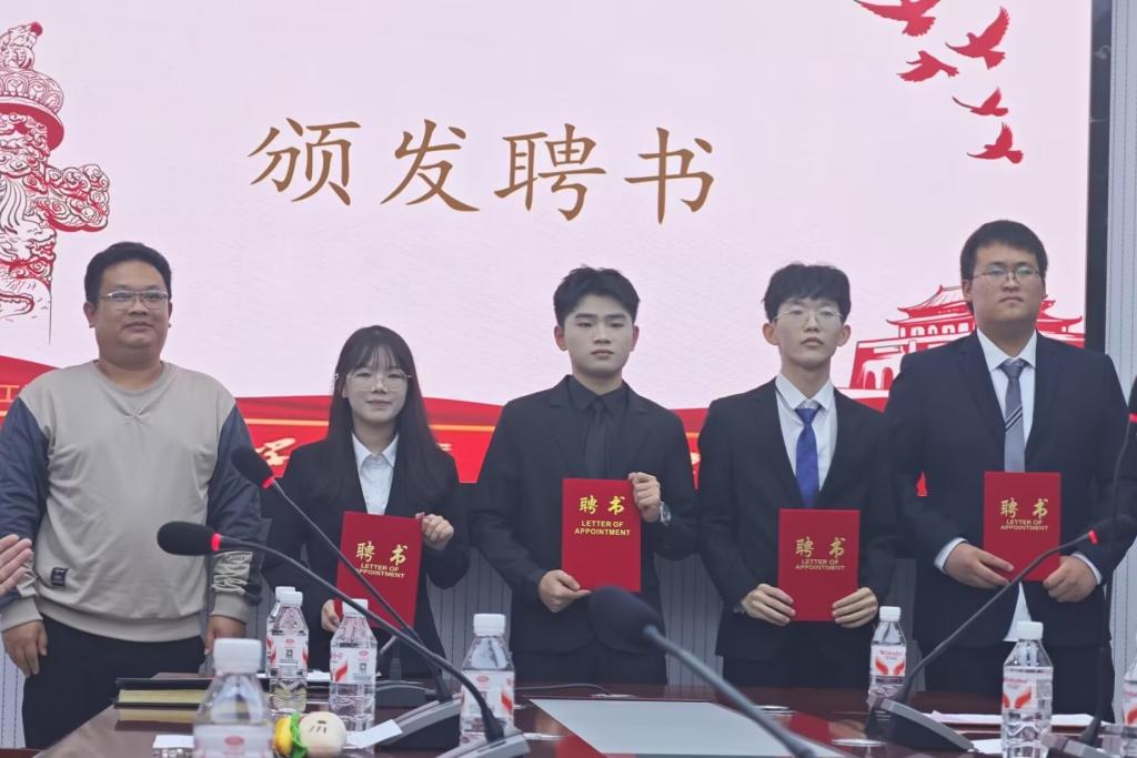 会上,四位前任部长总结过往工作、分享经验,尼加提老师为其颁发荣誉证书;新任部长发表就职演讲,承诺传承优良传统、务实履职,廖昭文老师为其颁发聘书。