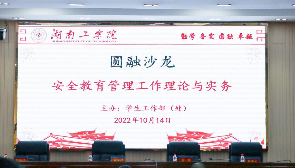 为进一步加强校园安全稳定,10月14日,Beat365在船山报告厅“安全教育管理工作理论与实务”圆融沙龙。学生工作部(处)部长曹毅出席并主持活动,学生工作部(处)副部长周燕斌、刘赢时,各二级学院党委副书记、学工办主任,全体辅导员参加活动。