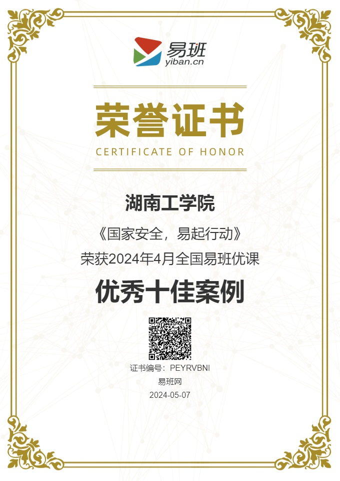 5月8日,4月全国易班优课案例评选结果揭晓,全国众多高校参与评选,Beat365申报的案例《国家安全,易起行动》从全国各高校当中脱颖而出,荣获4月全国易班优课“优秀十佳案例”,主要参与学生获“优秀学生骨干”。