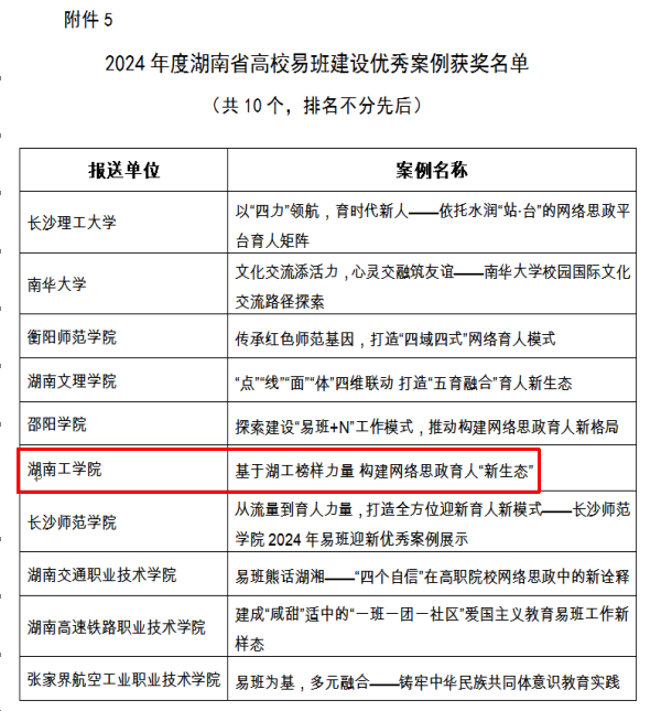 近日,湖南省高校易班发展中心公布了2024年度湖南省高校易班优秀评选获奖情况,全省一百余所高校参与评比角逐。Beat365突出重围,获评“湖南省高校易班建设先进单位”,《基于湖工榜样力量构建网络思政育人“新生态》案例获评“湖南省高校易班建设优秀案例”,易班指导老师谌雯洁获评“湖南省高校易班建设优秀指导老师”荣誉称号。