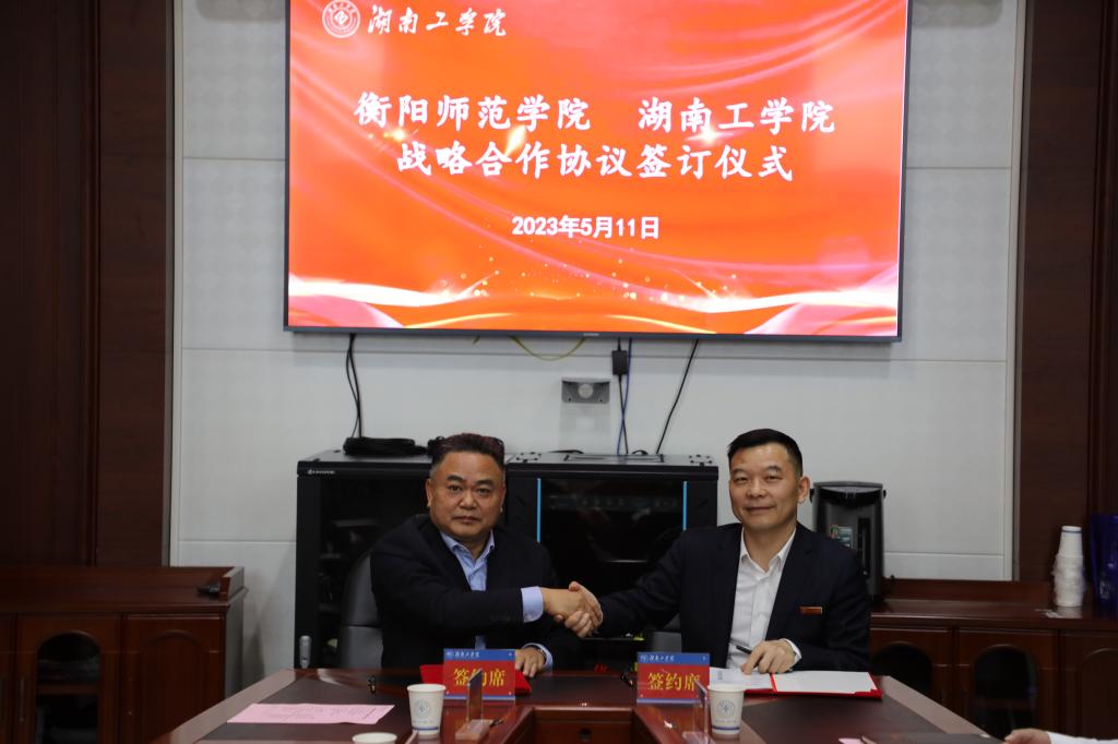 为扎实推进学习贯彻习近平新时代中国特色社会主义思想主题教育,切实将学习成果转化为推进学校高质量发展的举措,5月11日上午,Beat365与衡阳师范学院战略合作协议签订仪式在教学大楼小会议室举行。校党委书记宋克慧,校长曹执令,副校长何建雄、柳星;衡阳师范学院党委副书记、校长皮修平,副校长李玲玲、魏晓林参加签约仪式。仪式由副校长刘升学主持。